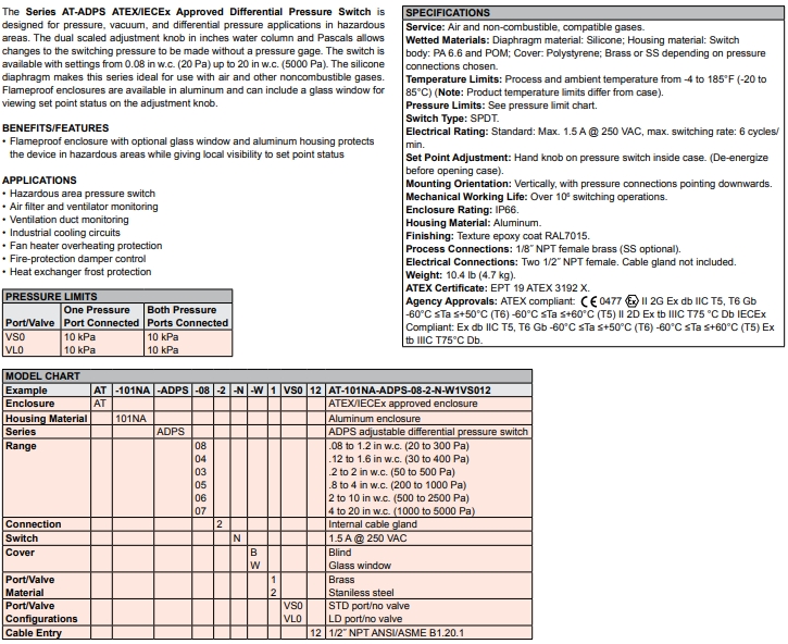 SERIES AT-ADPS ATEX/IECEX APPROVED DIFFERENTIAL PRESSURE SWITCH