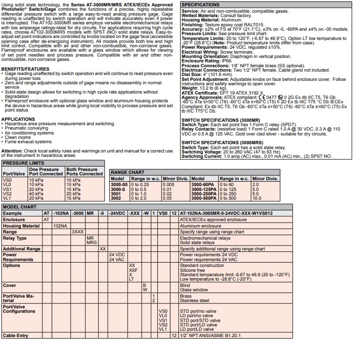 SERIES AT-3000MR/MRS ATEX/IECEX APPROVED PHOTOHELIC® SWITCH/GAGE