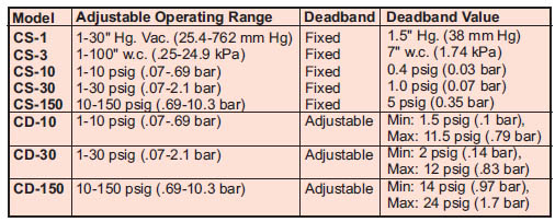 Series CS & CD. Diaphragm Pressure Switch. Visible Set Points, Fixed or Adjustable Deadband