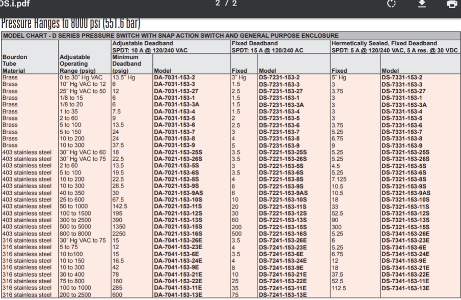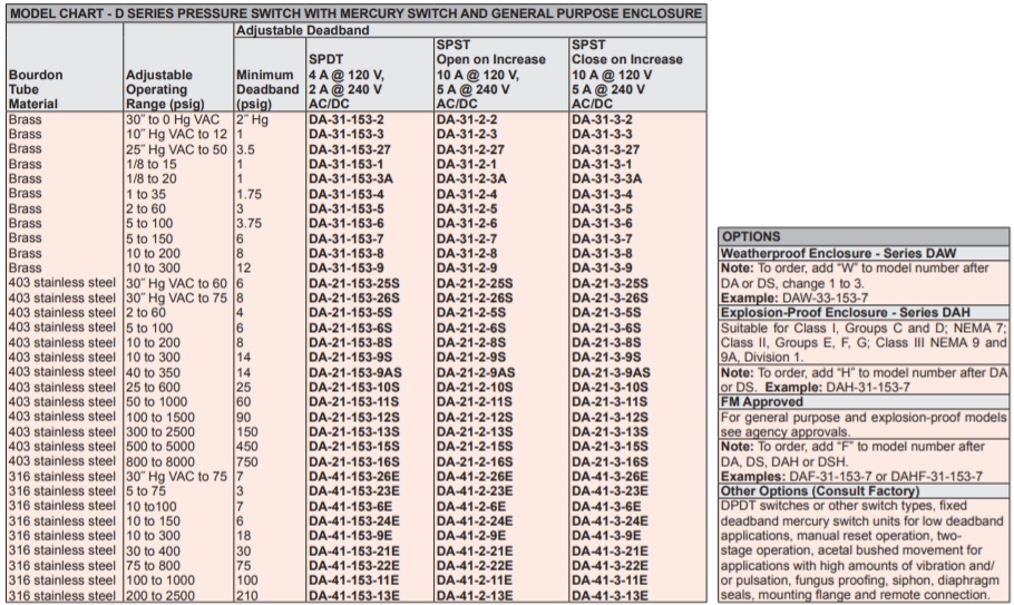 Series DA/DS. Bourdon Tube Pressure Switch. Pressure Ranges to 8000 psi (551.6 bar)
