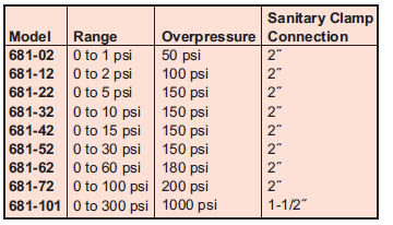 Series 681Sanitary Pressure TransmitterNo Liquid Fill Diaphragm, Sanitary Clamp Fitting