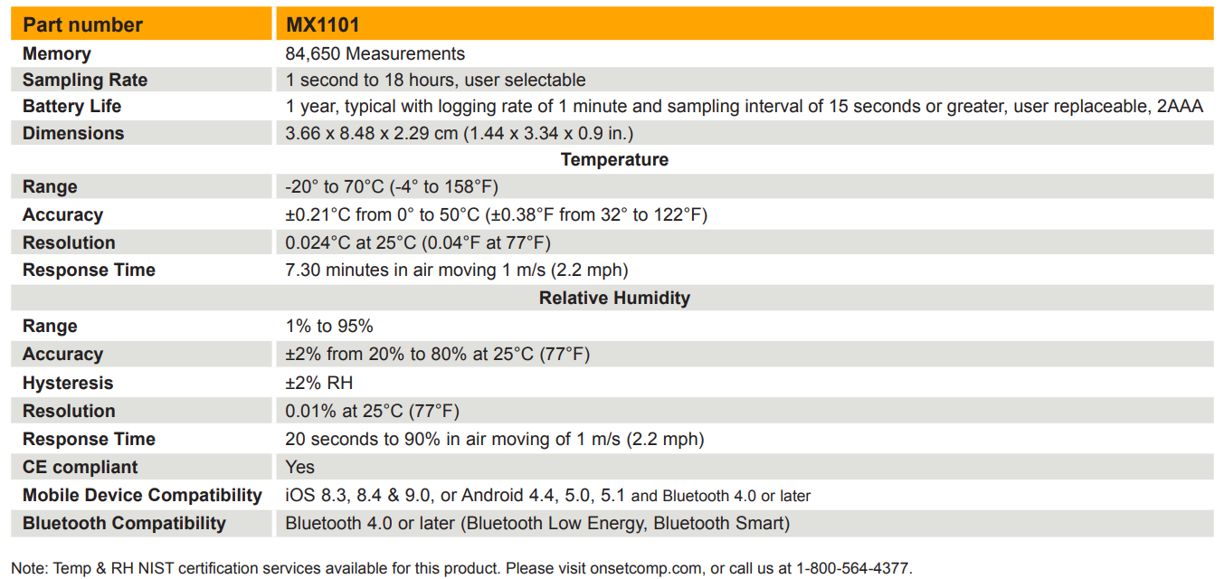 HOBO-MX1101藍牙智能溫濕度記錄器(室內款)