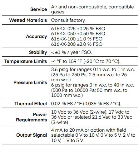 Series 616KX Differential Pressure Transmitters ±0.25%, ±0.50%, ±1.0%, ±2.0% Accuracy