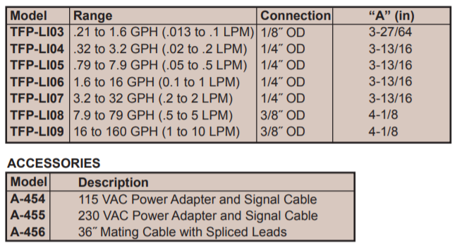 Series TFP-LI Liquid Turbine Flow Meter PPS Body, 0 to 5 VDC Output, LCD Indication