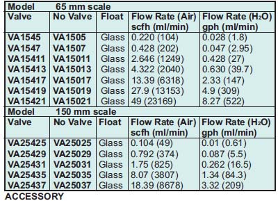 Series VA PTFE/Glass Flowmeter Variable Area, Universal 65 mm and 150 mm Scales, ±2% FS Accuracy