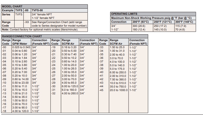 Series TVF Total View Industrial Flowmeter View Flow Rate from 360°, Water or Air Ranges