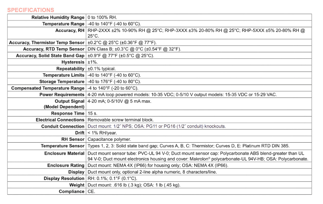 Series-RHP Humidity & Temp Transmitter, 2%-5% Accuracy, Polymer Sensors, Series RHP
