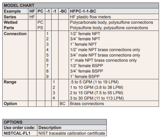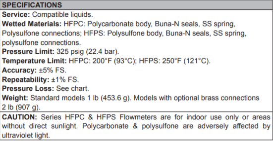 Series HFPC & HFPS Plastic Flowmeter ±5% FS Accuracy, Mount in any Position