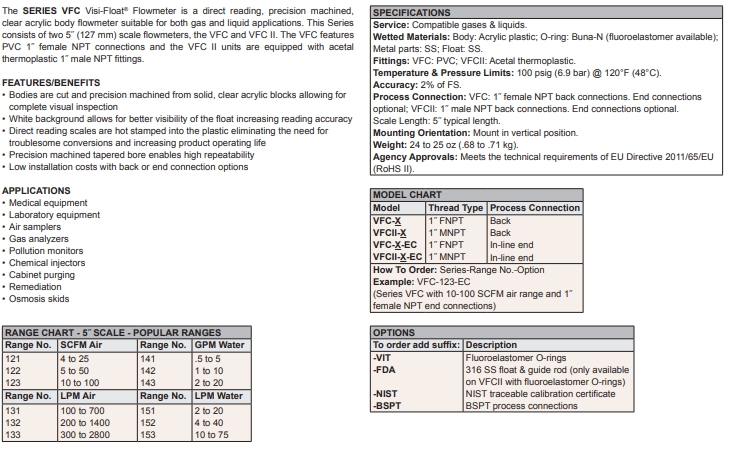 Series VFC/VFCIIVisi-Float® FlowmetersUsed to Indicate Air or Water Flow