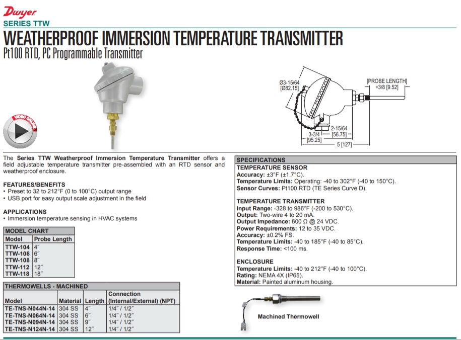 TTW系列 防風雨浸入式溫度傳送器 完整型錄下載