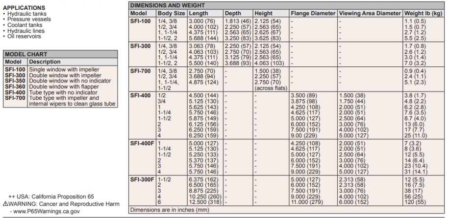 Series SFI-100 & SFI-300 MIDWEST Sight Flow IndicatorInexpensive Protection for Expensive Equipment and Systems