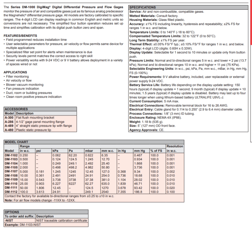 Series DM-1000 DigiMag® Digital Differential Pressure and Flow Gages