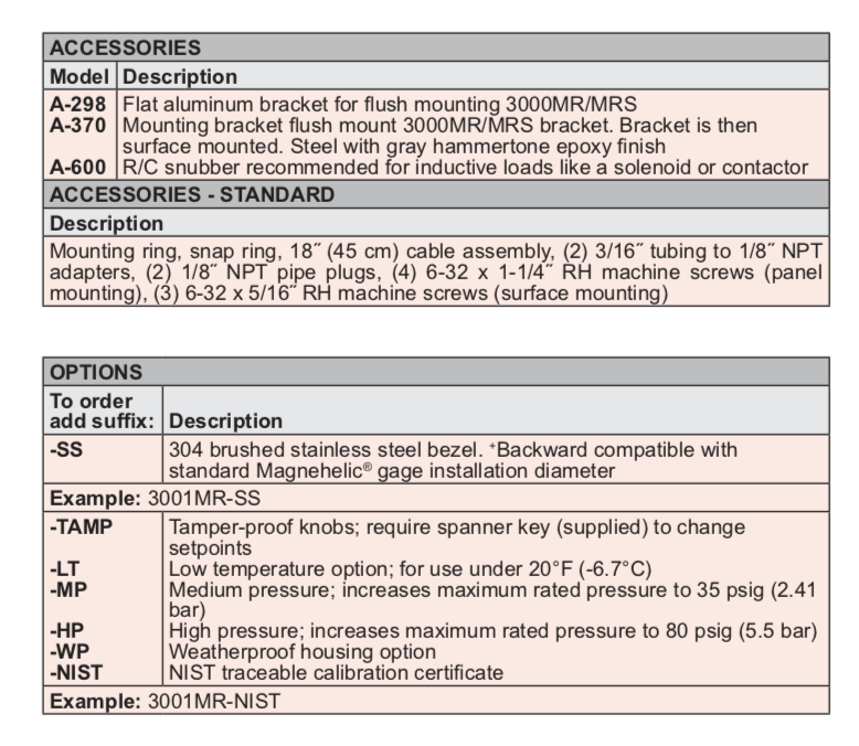Series 3000MR/3000MRS Photohelic® Switch/GageCombines Differential Pressure Gage with Low/High Set-Points, Compact Size