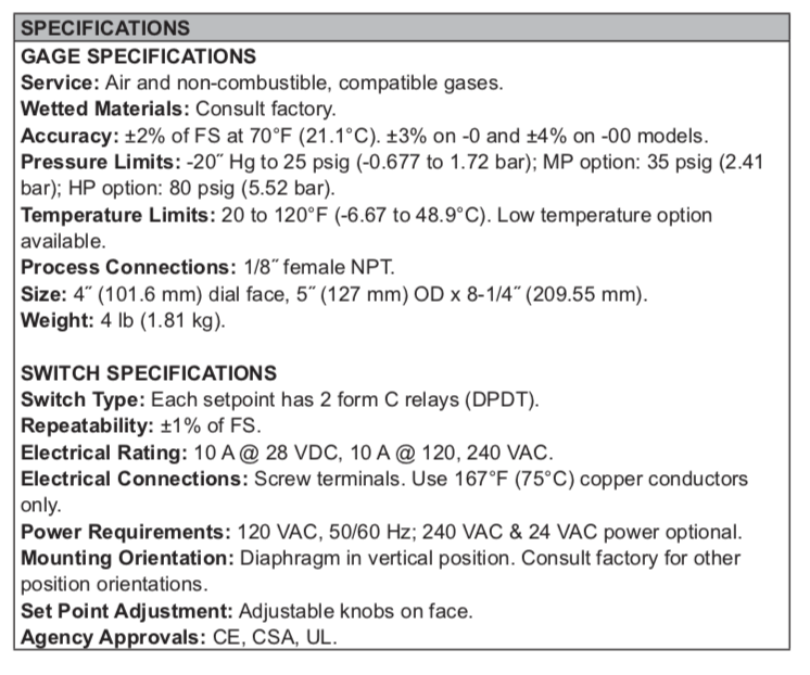 Series A3000 Photohelic® Pressure Switch/Gage3-in-1 Indicating Gage, Lo-limit and Hi-limit Control