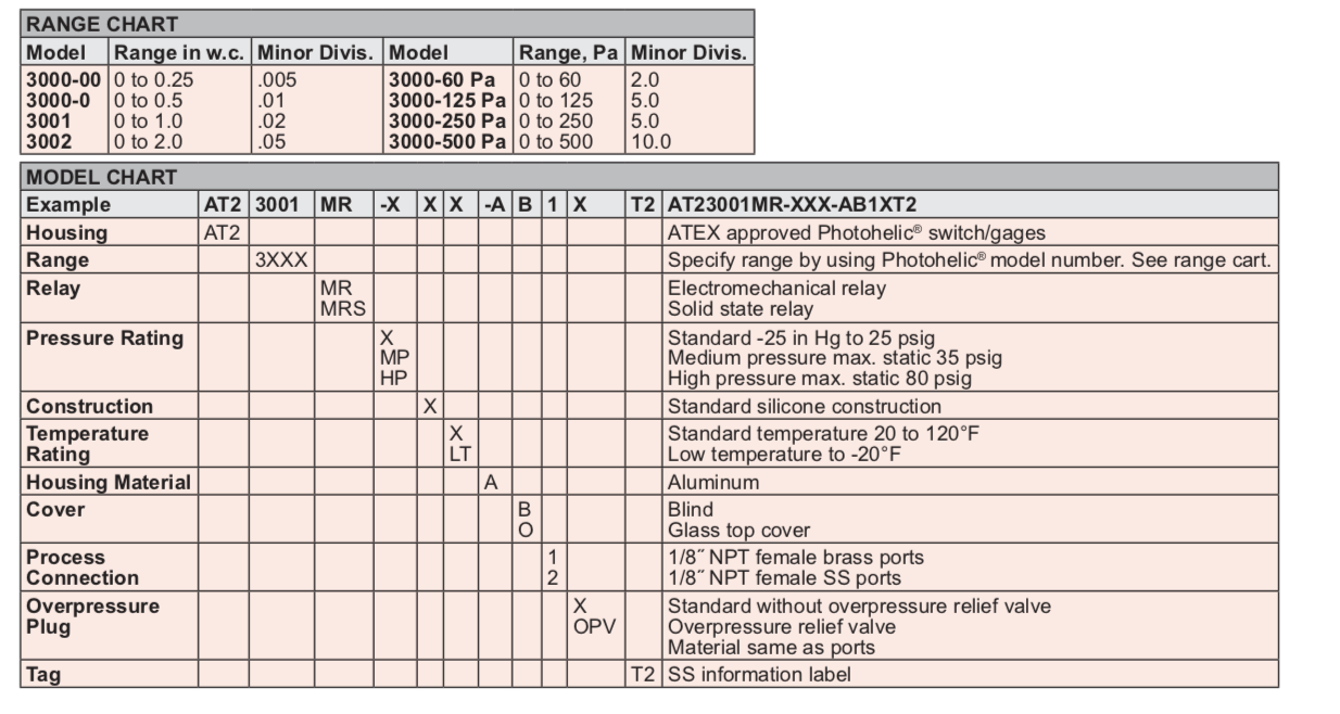 Series AT23000MR/3000MRS ATEX Approved Photohelic® Switch/Gage