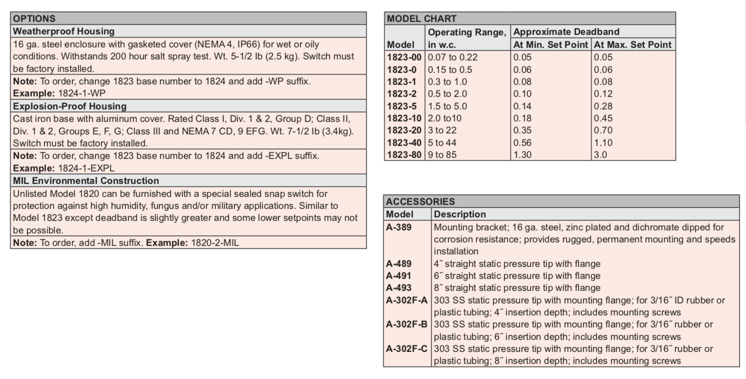 Series 1800 Low Differential Pressure Switch for General Industrial Service. Set Points from 0.07" to 85" w.c. Repetitive Accuracy within 2%