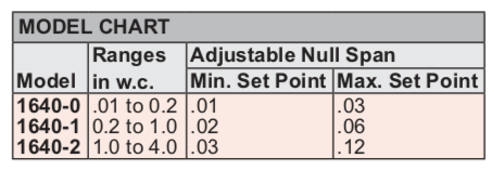 Series 1640 Floating Contact Null Switch for High and Low Actuation. Visual Set Point Adjustment, Adjustable Null Zone