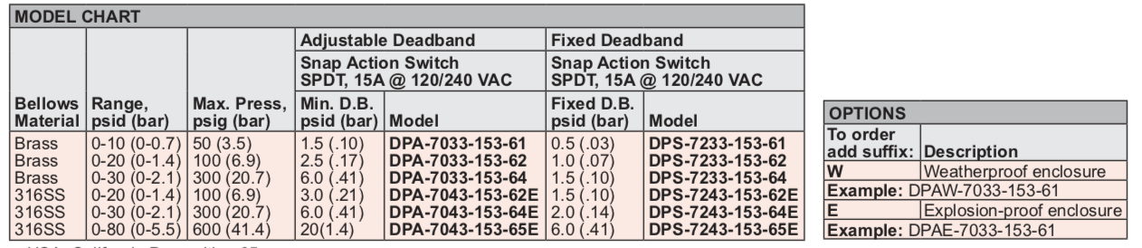 Series DP Double Bellows Differential Pressure Switch. Visible Setpoints, Adjustable or Fixed Deadband . . . High Pressure Ranges