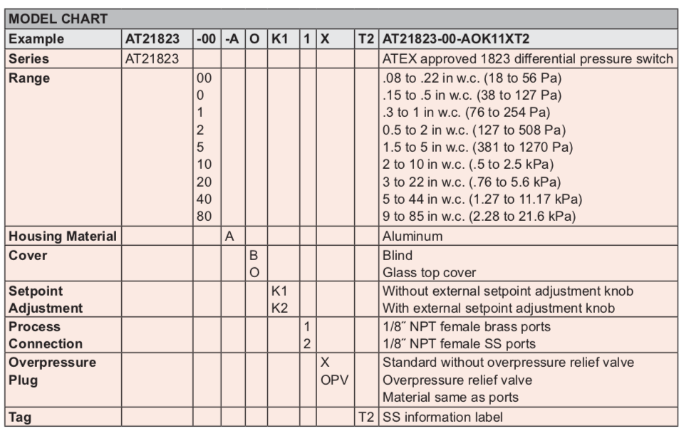 Series AT21823. ATEX Approved 1823 Differential Pressure Switch. The 1823 in Flame-Proof ATEX Enclosure