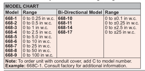 Series 668 Differential Pressure TransmitterRanges from 0 to 100" w.c., Overpressure Protection to 10 psig, ±1% Accuracy