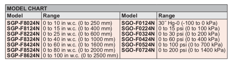 Series SGP Stainless Steel Schaeffer Gage1.6% Full Scale Accuracy, 316, 316L SS & PTFE Wetted Parts