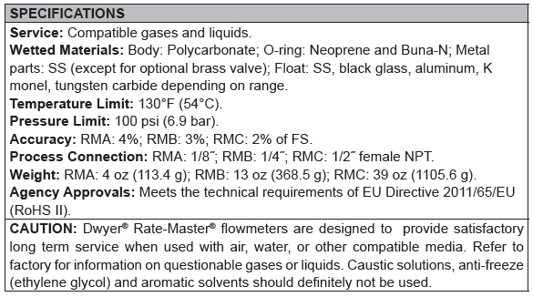 Series RM Rate-Master® Polycarbonate Flowmeter2", 5" or 10" Scale, Interchangeable Bodies