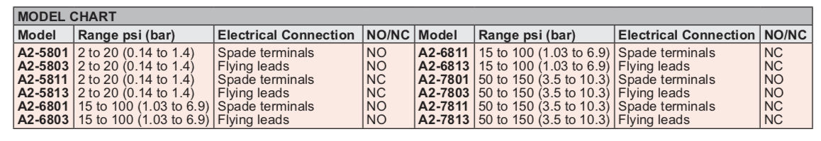 Series A2. Subminiature Pressure Switch. Field Adjustable