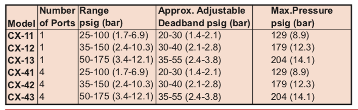 Series CX Compressor Pressure Switch. Adjustable Set Point and Deadband, 20 Amp Rating