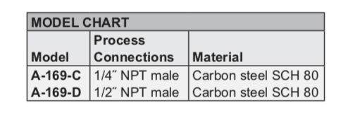 Series A-169 Carbon Steel Siphons. Carbon Steel, M NPT Connection