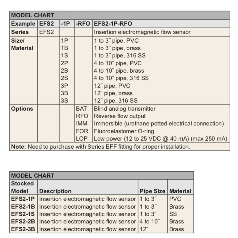 Series EFS2 Insertion Electromagnetic Flow Sensor. No Moving Parts, Durable, Easy Installation & Maintenance, 1 to 12" Pipe (25 to 305 mm)