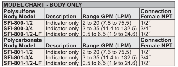 Series SFI-800 Sight Flow Indicator/Transmitter. Low Cost, Optional Output for Flow Rate and Totalization, UV Stabilized Polycarbonate Model