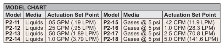 Series P2 Flow Switch. Ideal for Air and Post-Filtered Water Applications, Fixed Set Point, FDA Compliant