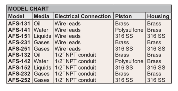 Series AFS Adjustable Flow Switch. For Oils, Water and Gases, Infinite Adjustments