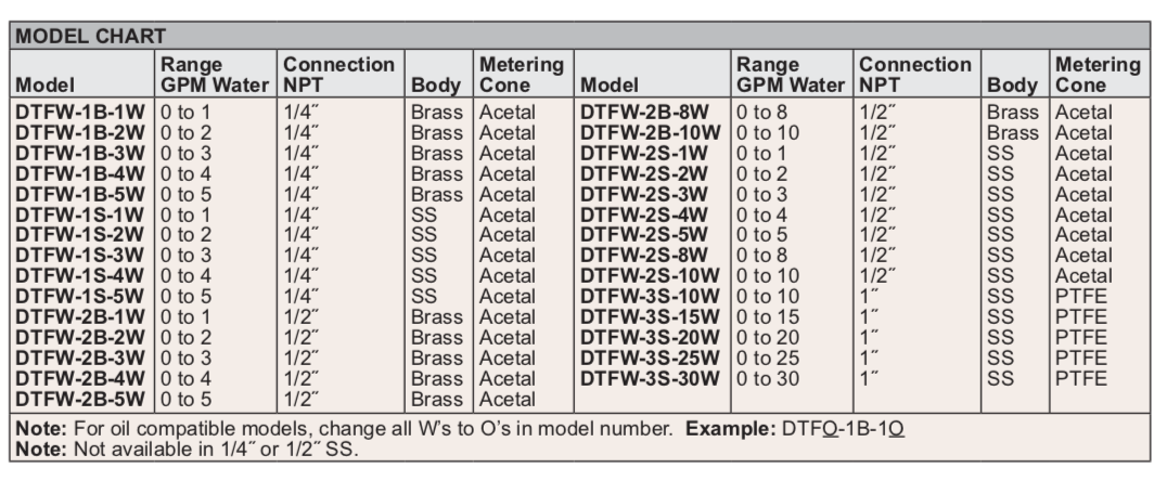 Series DTFO Variable-Area Flowmeter for OilBrass & 316 SS Body, 2% FS Accuracy