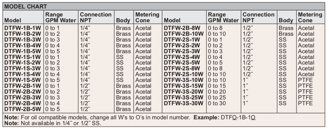 Series DTFW Variable-Area Flowmeter for LiquidsIn-Line Mounting, 2% FS Accuracy