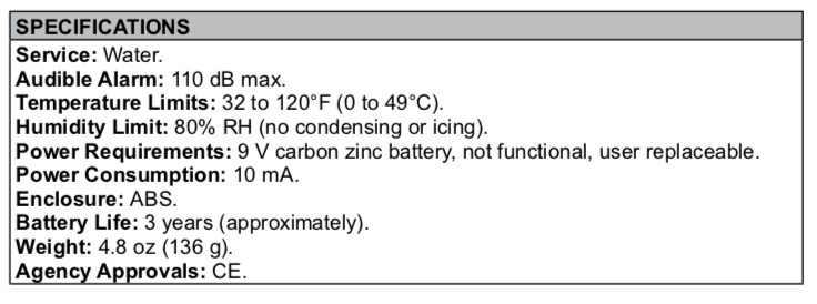 Model WA Water Leak DetectorLow-Cost Compact Design, Wall Mount, Loud Alarm