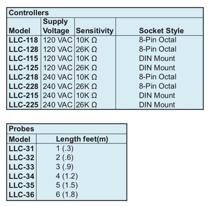 Series LLC Conductivity Controller. Single Point or Differential Level Service, Compact Size, Up to 6 ft. (1.82 m) Probes