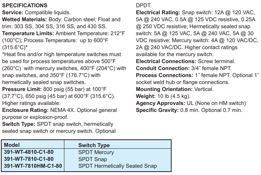 Series 391/393/394 Side Mounted-Chamber Type Level Control