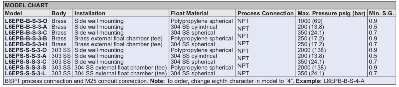 Series L6 FLOTECT® Liquid Level Switch. Easy In-wall or External Installation, Up to 2000 psig (138 bar), Compact Size