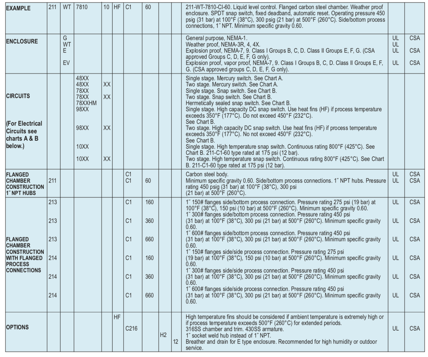 Series 211/213/214 Flanged Chamber Level ControlExternal Mount, Pressure to 450 psig (31 bar), Temperature to 500°F (260°C)