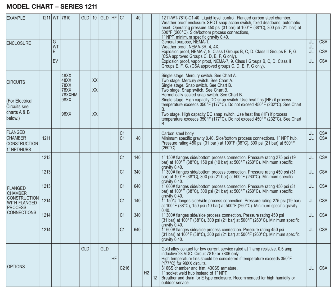 Series 1211/1213/1214 Flanged Chamber Level ControlExternal Mount, Pressure to 450 psig (31 bar), Temperature to 500°F (260°C)