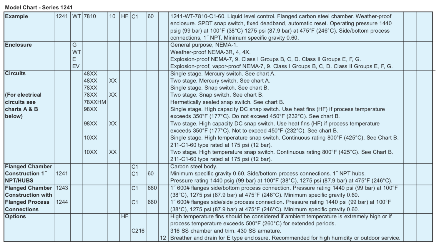 Series 1241/1243/1244 Flanged ChamberExternal Mount, Pressure to 1440 psig (99 bar), Hermetically Sealed Switches and Temperature to 475°F (246°C)
