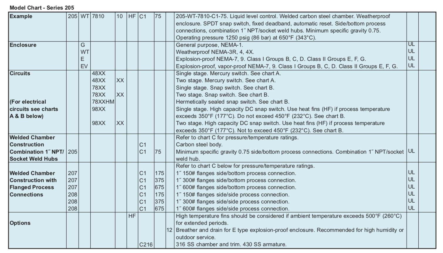 Series 205 Welded ConstructionExternal Mount Pressures to 1250 psi (86 bar) at Temperatures to 650°F (343°C), Optional Explosion-Proof Enclosures, Hermetically Sealed Switches
