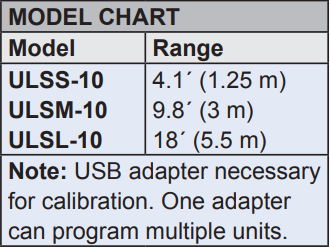 Model ULSL Ultrasonic Level Sensor18' (5.5 m) Measuring Range, Non-Contact Transmitter, 4 SPST Programmable Relays