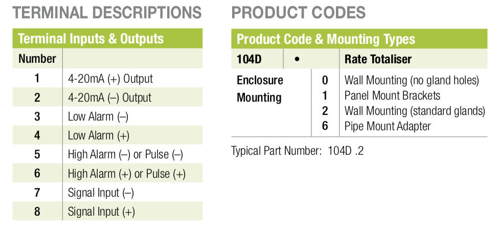 The 104D Field Mounting Rate Totaliser requires no external power and is designed to operate with turbine, positive displacement and paddlewheel flowmeters in applications such as irrigation systems and pipelines, and as a replacement for mechanical registers.