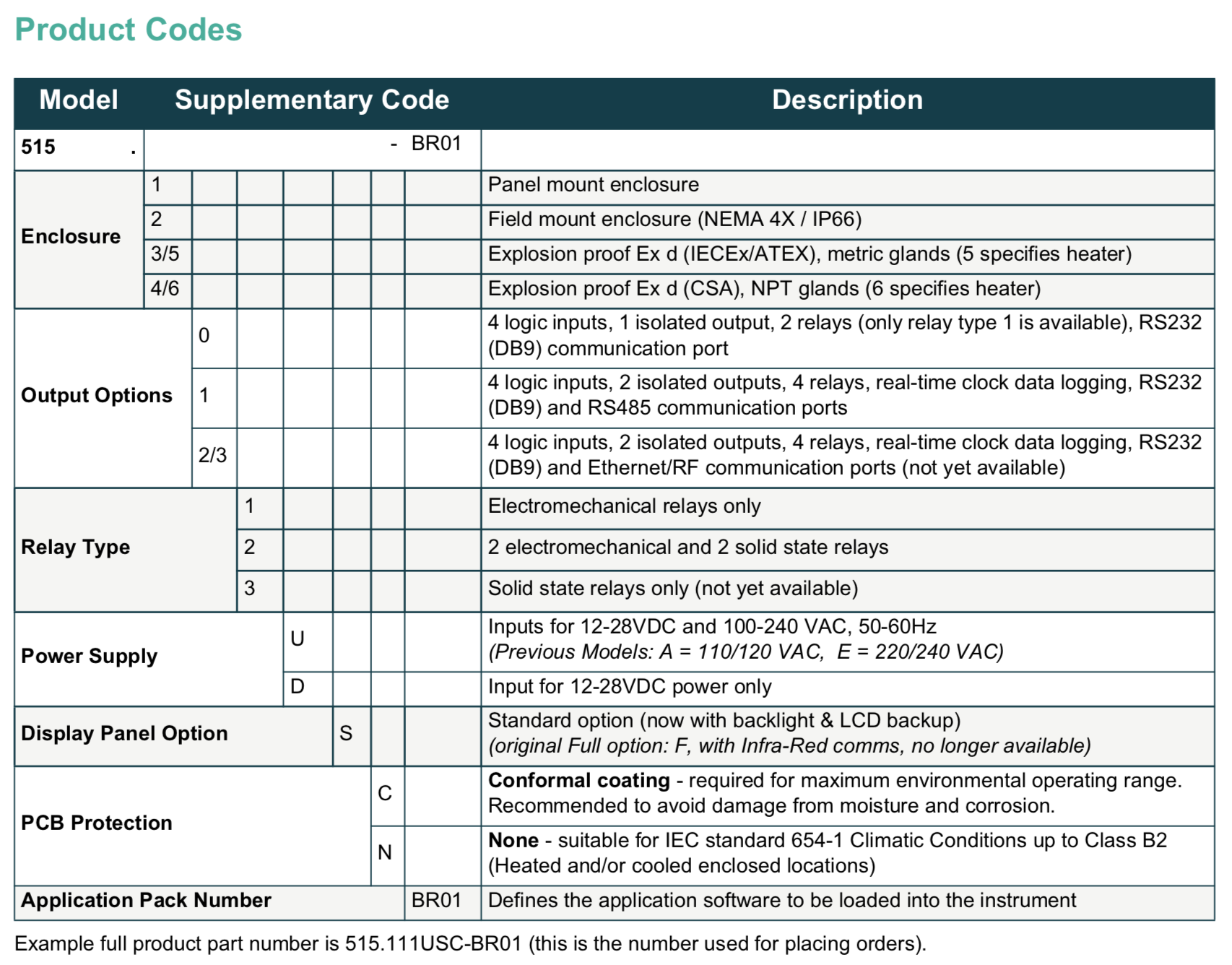 The 515 BR01 application is a batching ratio controller for delivery of preset quantities at preset ratios using volumetric frequency inputs. Batch control can operate in preset or on-off modes, while flow control can be set to various loop control modes.