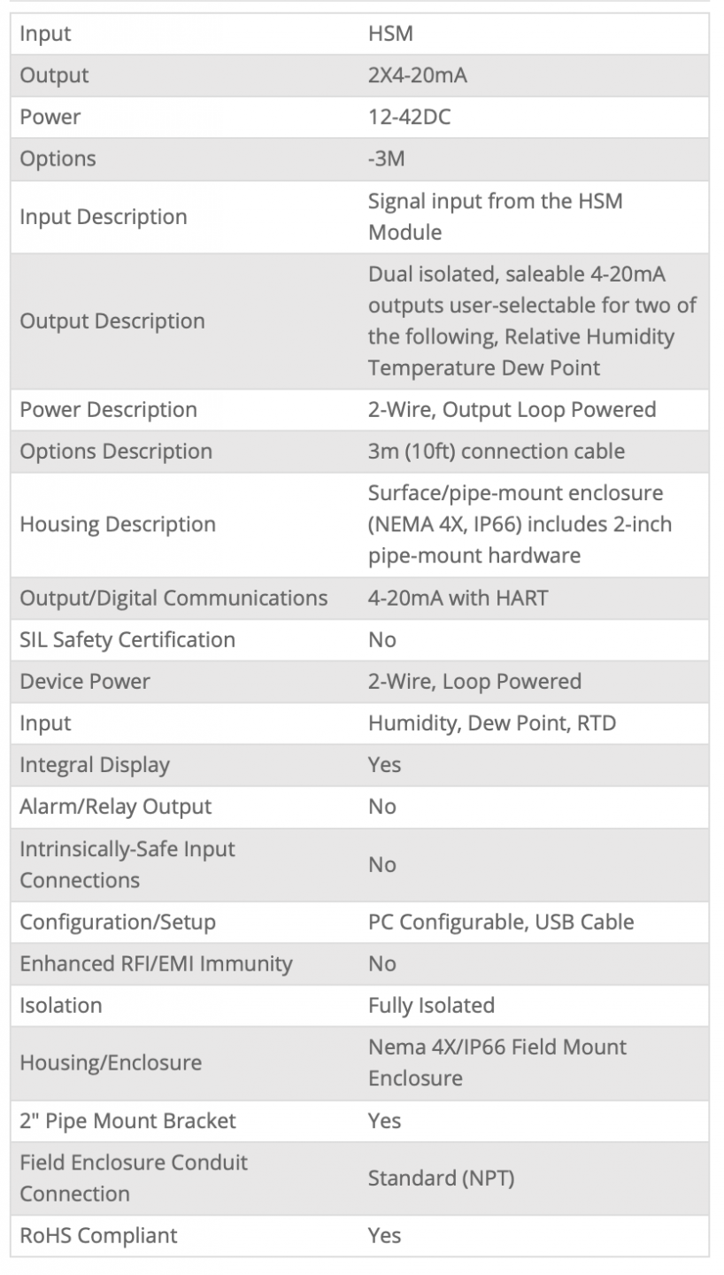 HDM Humidity and Temperature Display Module features a programmable display that can be set to indicate humidity, temperature, dew point, analog (current) output #1, analog (current) output #2, or scroll between the five values at four second intervals. This module is part of the HTZ. The other HTZ module is: HSM.