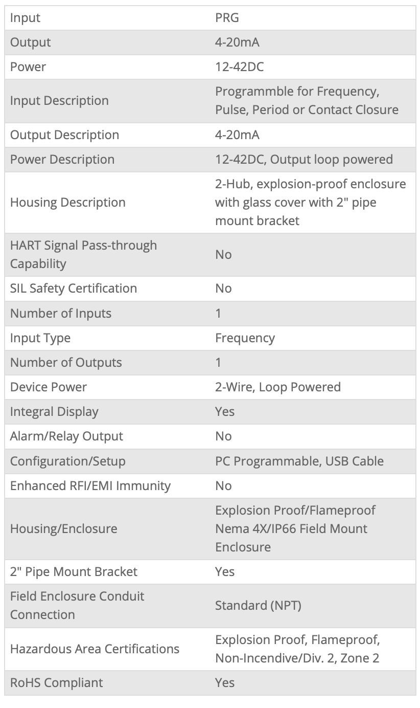 The FDY PC-Programmable Frequency-to-DC Transmitter with Display monitors frequency, period, high or low pulse width, and contact closure signals. It converts the input signal to a proportional, input-to output isolated 4-20mA output ready for direct interface with a readout instrument, recorder, PLC, DCS, SCADA system or other readout instrument.