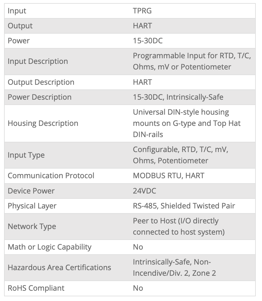 Approved for intrinsic-safety and non-incendive use, the TCM Temperature Concentrator Module has 16 channels that can be individually configured to accept an RTD, T/C, millivolt and/or resistance/ potentiometer signal. These signals can then be transmitted via HART to a HART host or via MODBUS RTU with a separate gateway, named the HMC.