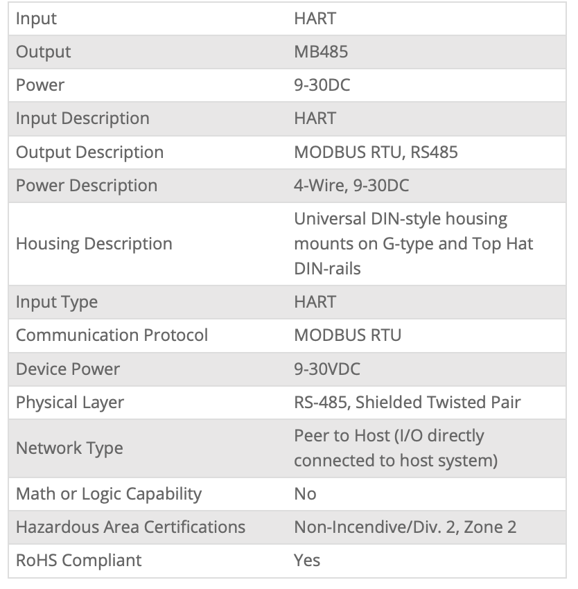 The HCS HART Concentrator System converts a HART digital signal to a serial (RS-485 or RS-232) MODBUS RTU communication protocol.